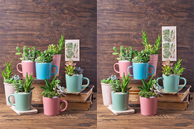 Search the photos to find the differences between them. Click the differences in either photo as you find them. Try to find all 10 as quickly as possible.