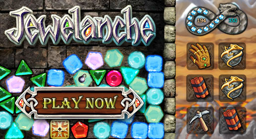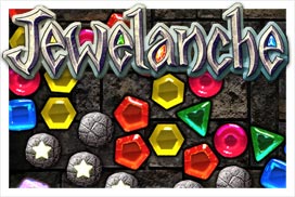 Jewels are falling all around, and you'll need all your matching might to keep from being buried in a Jewelanche! String 3 or more gems together to clear them, and fill the sacred snake with precious stones before jewels reach the top of the board. Earn gold to buy tools like bombs, a pickaxe, or lucky clover that will help you stay one step ahead of the torrent of bling! Dare to click on Pandora's box for a free power-up or dastardly trap. Risk is everywhere! Bury yourself in 30 levels of addictive gem-matching mania when you play Jewelanche today!