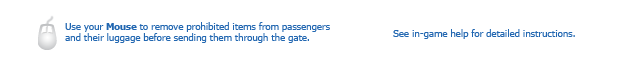 Use your mouse to remove prohibited items from passengers and their luggage before sending them through the gate. See in-game help for more detailed instructions.