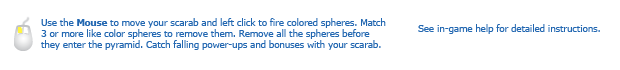 Use the mouse to move your scarab back and forth, click the left-mouse button to fire colored spheres.