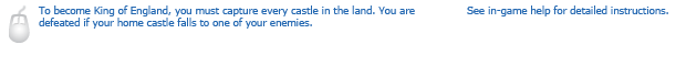 To become King of England, you must capture every castle in the land. You are defeated if your home castle falls to one of your enemies.